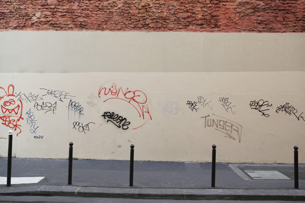L'histoire d'une lutte entre taggers et employés de mairie sur deux murs de ma rue.