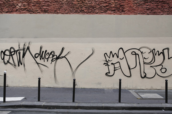 L'histoire d'une lutte entre taggers et employés de mairie sur deux murs de ma rue.