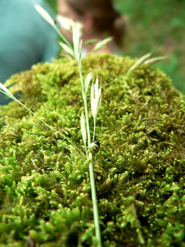 3 juin 2007, M. en Bourgogne. Petite bête verte sur la mousse.
