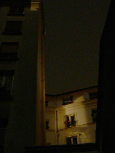 17 décembre 2005. Une fenêtre et la lune éclairent la cour.