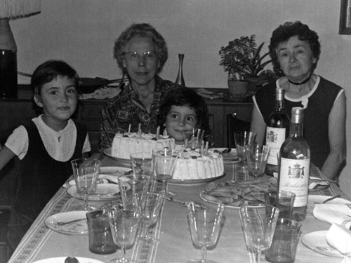 Août 1970. Anniversaire de Laurence avec la tante Céline et Mamie Rose