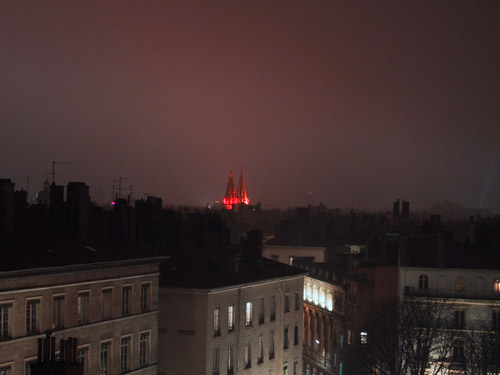 6 décembre 2003. L'église saint Nizier pansée par la brume.