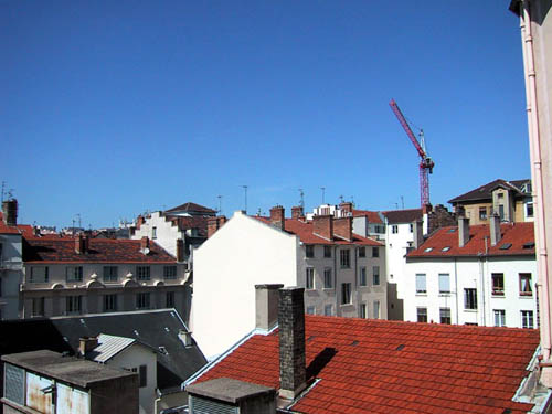 vue de la cuisine sous un soleil de plomb -- l'hôpital était encore en construction