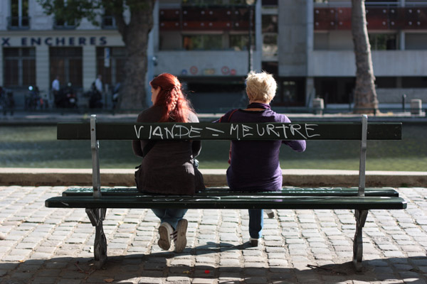 Canal saint Martin, banc végétarien.