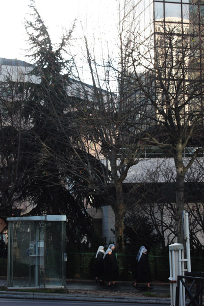 Reflets de soleil pâle sur nonnes, boulevard Pasteur.