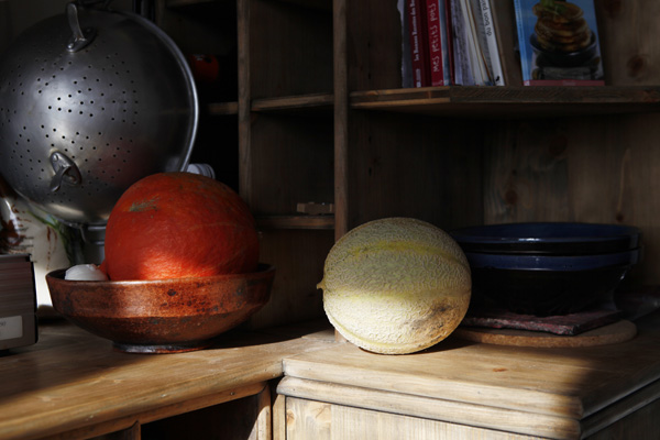 Fruits et légumes sur le nouveau meuble de cuisine de Rémi