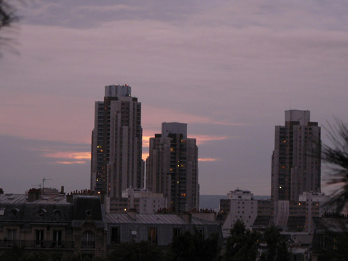 22 août, parc des Buttes-Chaumont. Coucher du soleil.