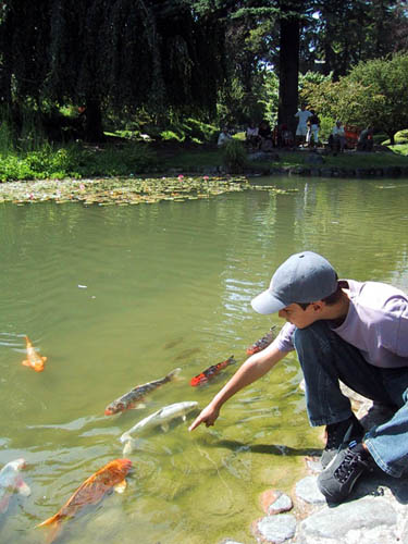 2003, jardin japonais. Les carpes mangeuses de doigts d'enfants, très