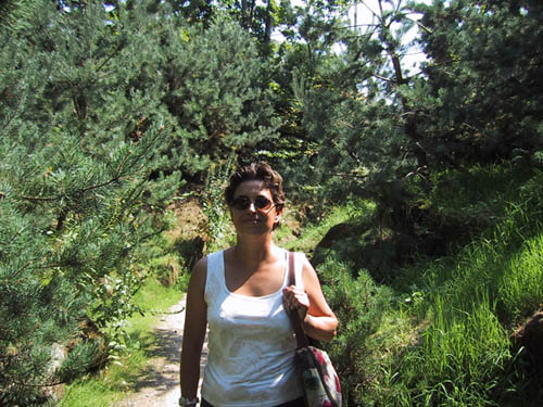 Août 2003, jardin vosgien. Laurence sur un sentier montagneux.