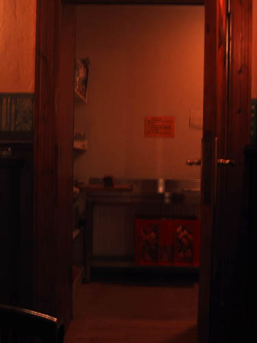 | Mardi soir, première virée à Prenzlauer Berg. Rues sombres, pluie fine, pas un chat dans les rues. Nous nous réfugions à l'Eckstein. "California über alles" grésille dans un poste radio de la cuisine. Petit moment de bonheur. | |