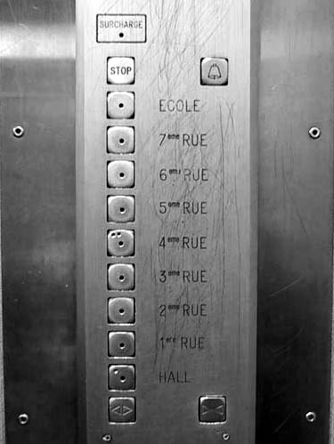 les boutons de l'ascenseur. Ici on ne monte pas au troisième mais