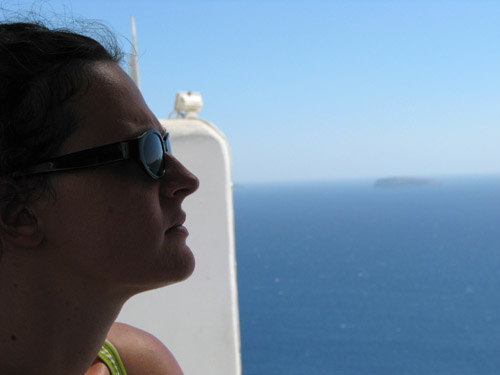 3 août 2007, Santorin Ia. Déjeuner avec vue