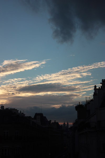 Le couchant au-dessus du Sacré Coeur. M'en lasserai-je un jour? Sans doute, comme tout le reste.