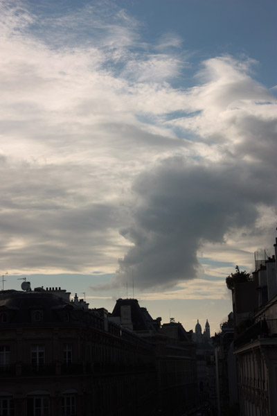 Le ciel au-dessus du Sacré Coeur. M'en lasserai-je un jour? Sans doute, comme tout le reste.