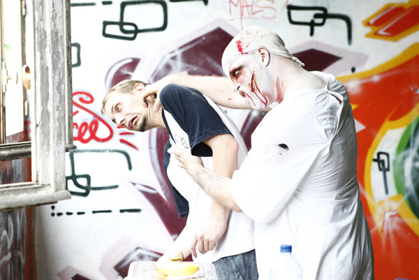 Tournage du court-métrage "Hôpital zombie" dans un pavillon du sanatorium d'Aincourt
