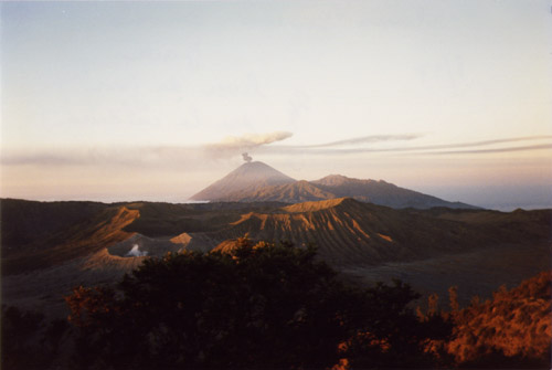 Java. Caldeira du Bromo, volcans Semeru au lever du soleil.