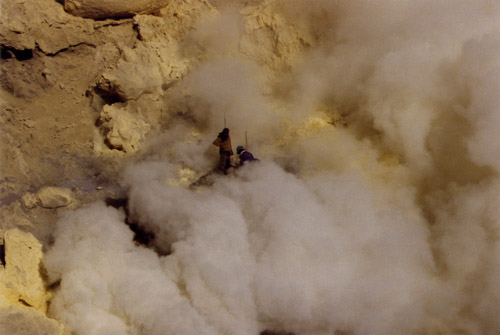 Java. Cratère du volcan Kawa Ijen. Ramasseurs de soufre.