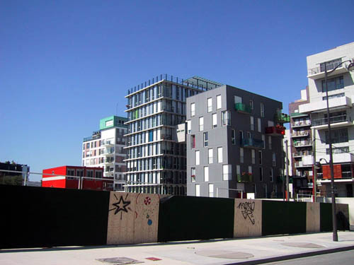 un peu plus loin, les immeubles en question, tout prêts de la future université. Dans un instant je vais me manger une pancarte Kaufman & Broad en pleine gueule.
