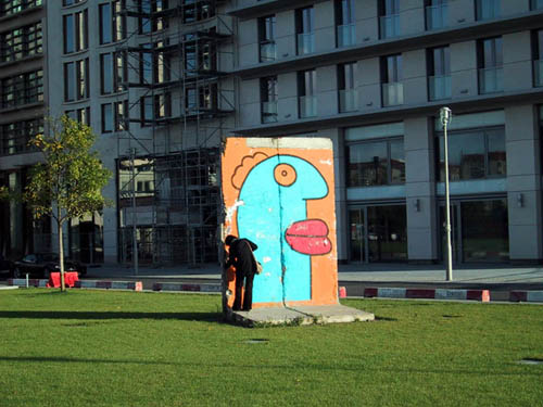 Tentative de vandalisme sur un bloc de mur préservé de la Leipzigerplatz.