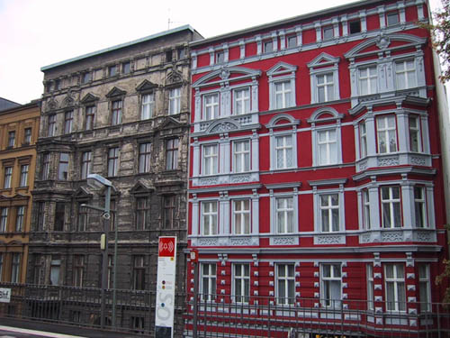 Façades d'immeuble sur la Skalitzerstrasse. Ravalement tape à l'oeil à la berlinoise.