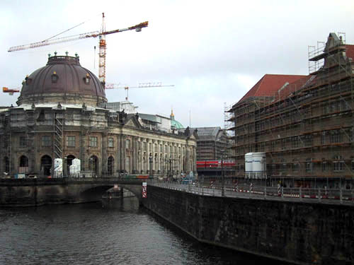 La pointe de l'île aux musées traversée par la voie ferrée.