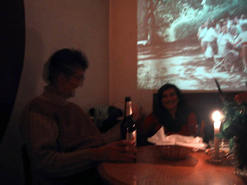 Prenzlauer Berg, Kastanienstrasse. Bière et houmous bio au Morgenrot. Nous demandons pardon à la diretion, nous avons oublié de débarrasser la table en partant. Agréable apéro diapo avant d'aller au restaurant, enfin. |