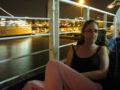 1er août 2007, Le Pirée. 23h, on s'installe sur le pont sans savoir encore qu'on y restera 18h.