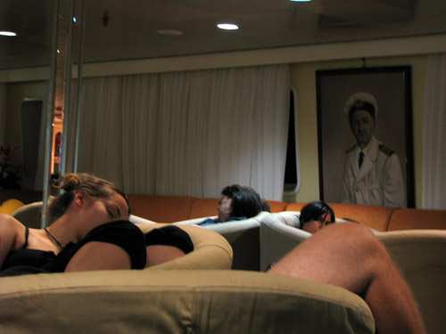 2 août 2007, mer Egée. 5h du matin, le froid nous chasse vers les salons transformés en dortoir.