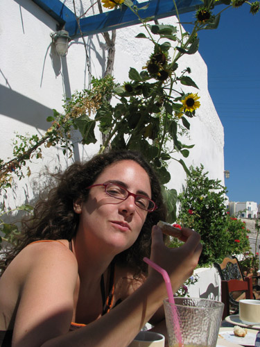 3 août 2007, Santorin Akrotiri. Petit déjeuner.