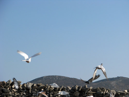 6 août 2007, Paros, Lefkes. Course aux colombes
