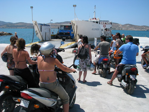 7 août 2007, Paros, Pounda. En attendant de monter dans la caïque, tout le monde regarde la vedette Stéphane Berne (hors champ)