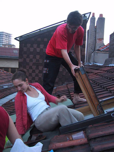 Passage du solite vers l'insolite en deux mouvements. Premier mouvement : s'asseoir sur le rebord du velux.