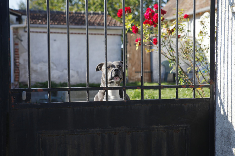 Mots-clés chien • fleur • haie • promenade • rue